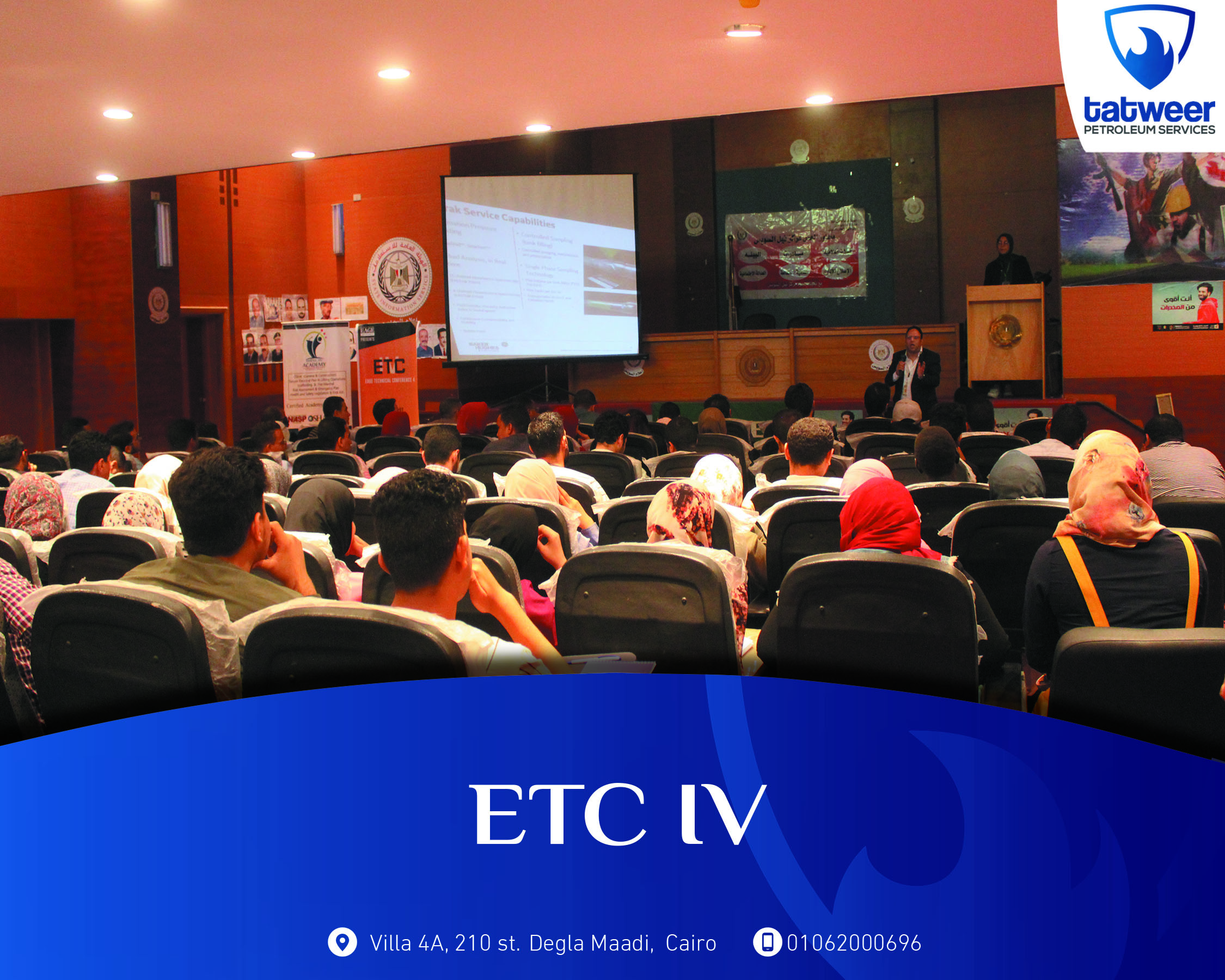 ETC IV is a technical conference prepared by EAGE Suez team to make as many students as they can more technically aware of the most important petroleum concepts in the current industry. A lot of valuable technical sessions, prepared by the leading petroleum services companies in Egypt, were successfully provided to all the conference attendees.